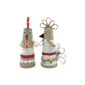 Fotografie jsou jen ilustrační a vše je ruční práce. Dekorace jsou vyrobeny z kvalitních materiálů. Základ figurek tvoří papírové kužely od příze, které zbývají po výrobě textilu v jiném sociálním podniku. Tím dostávají možnost nového uplatnění.