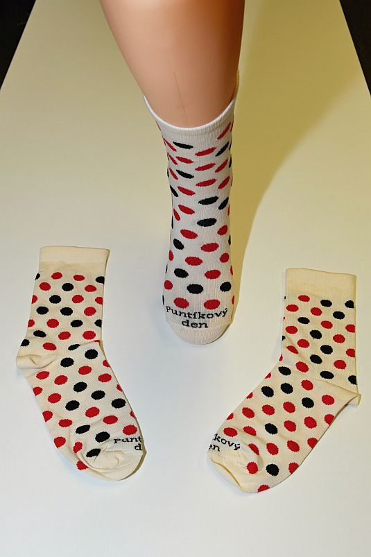 Ponožky vznikly ve spolupráci s českou rodinnou firmou exkluzivně pro naši puntíkovou kampaň. Každým krokem v nich pomáháte šířit osvětu a přispíváte na osvětové programy pro děti ve školách a školkách.